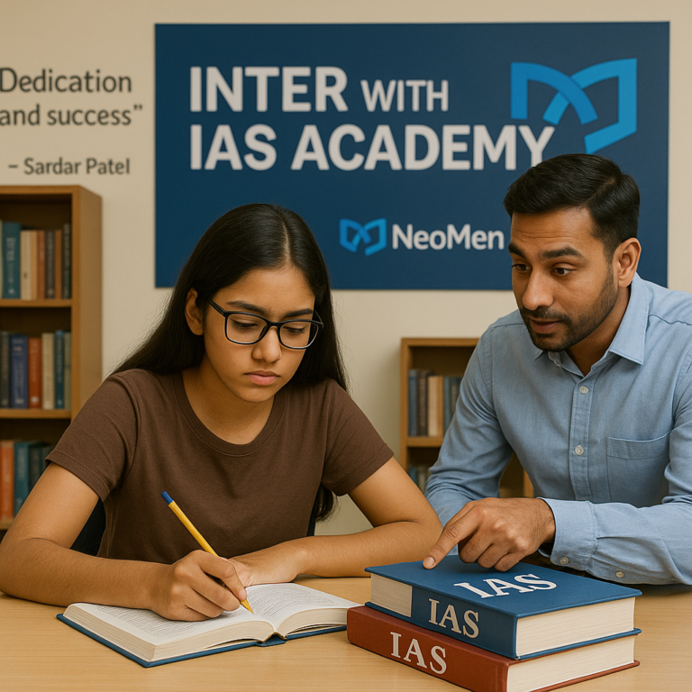 At Neomentors IAS Academy, we offer a unique program that combines Intermediate education (MPC, MEC, CEC, or HEC) with dedicated IAS coaching, specially crafted for students who aspire to join the Indian Administrative Services (IAS) and other prestigious civil services from an early stage.
